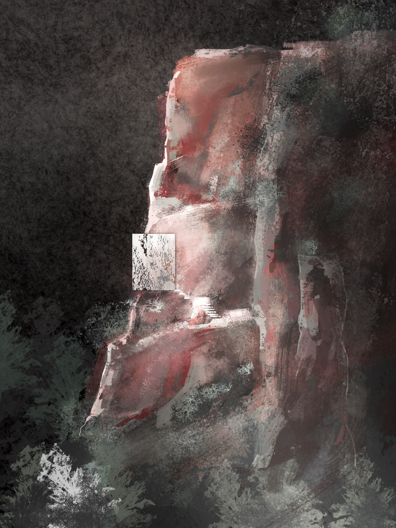 At the threshold the body is between the abstraction and the reality of the rock texture before turning into the central space