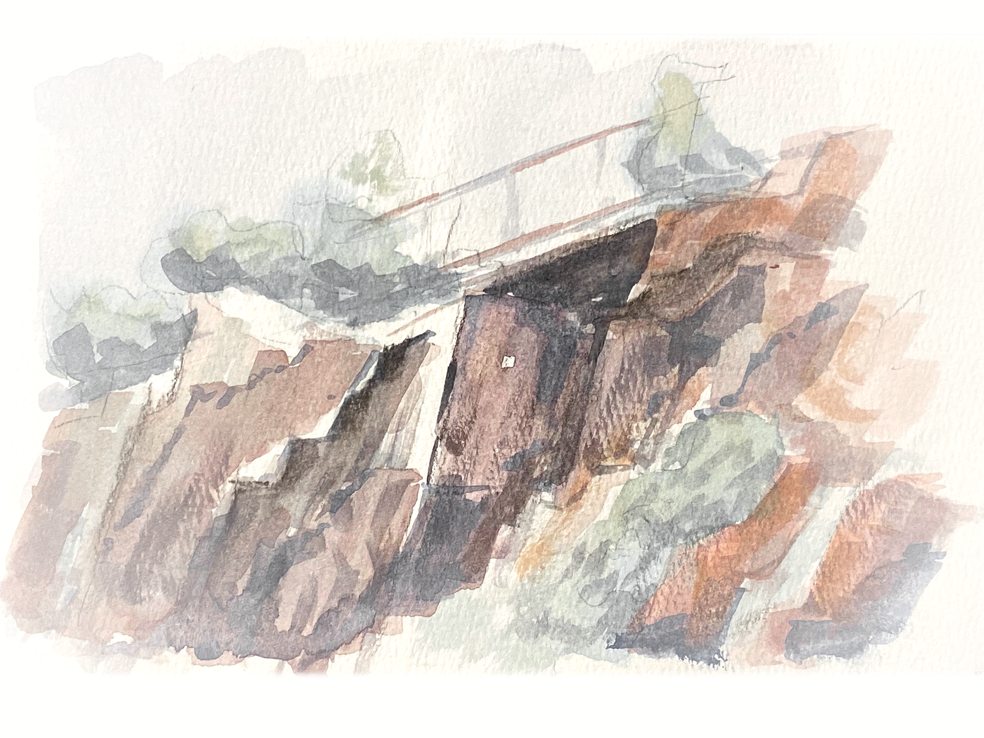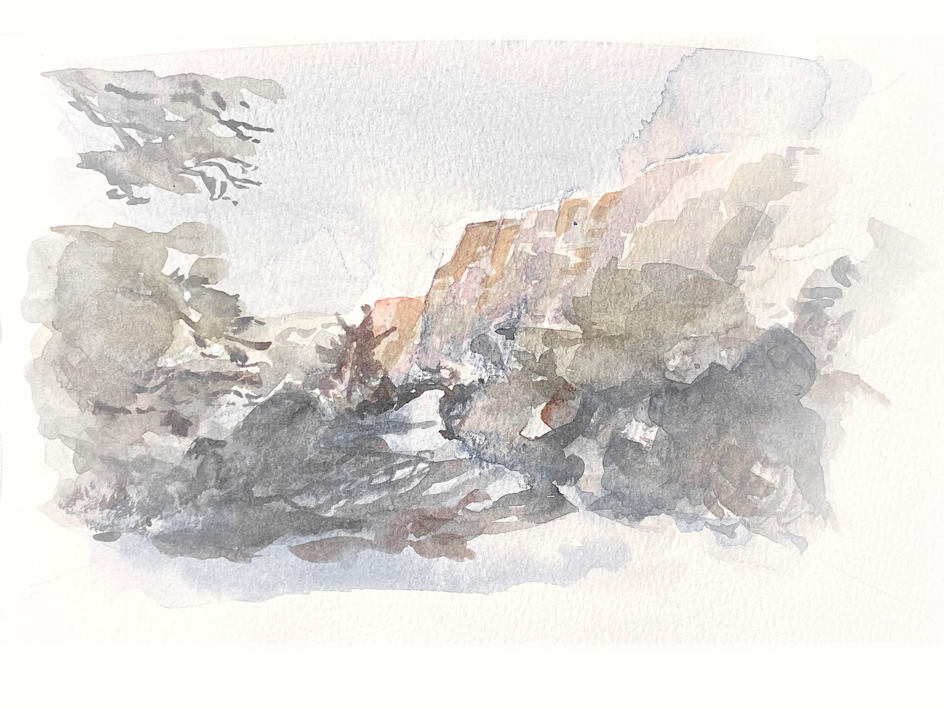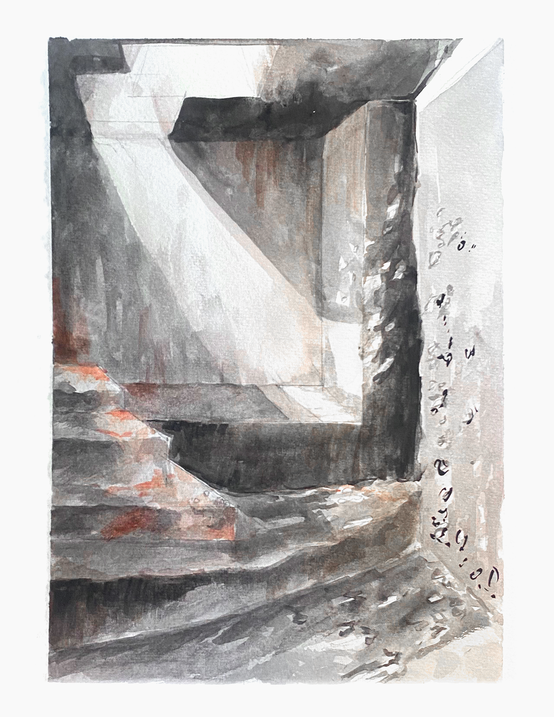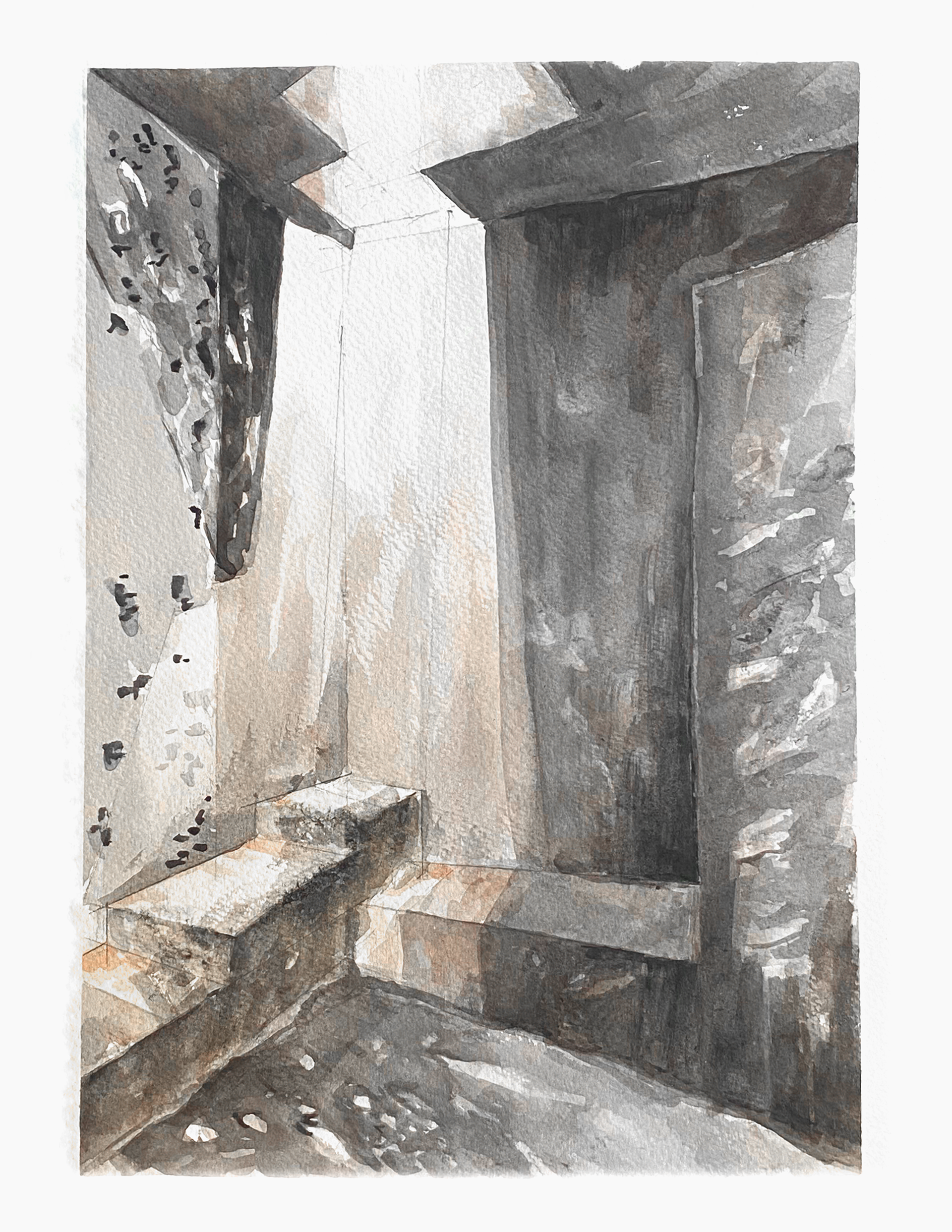 As the body ascends, each footstep meets less stair and more stone. Dappled light falls across the rock surface, shifting throughout the day